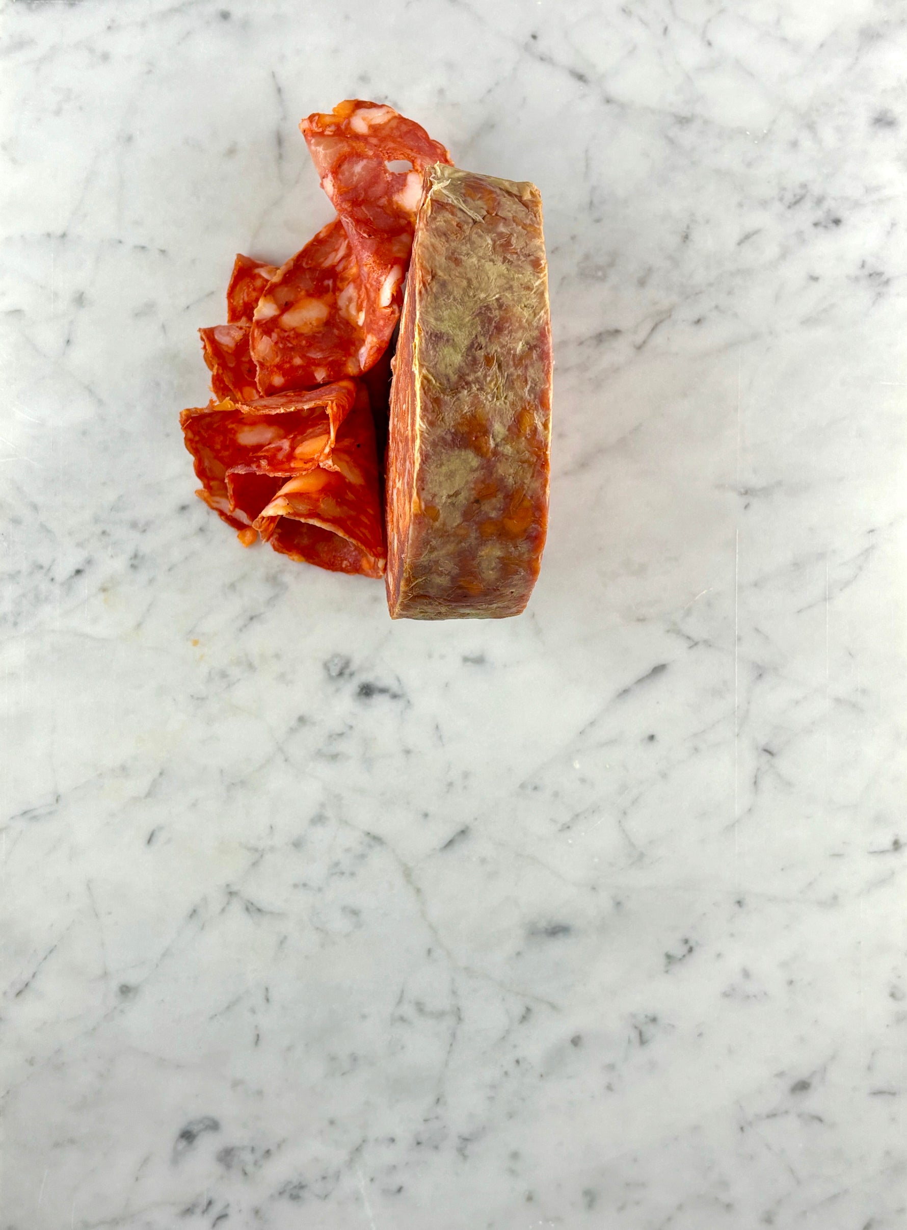 Eenheid prijs PerZeer pittige salami met peperoncini en paprika. Ook al is deze salami in Toscane gemaakt, het zuidelijk temperament is zeker te proeven!