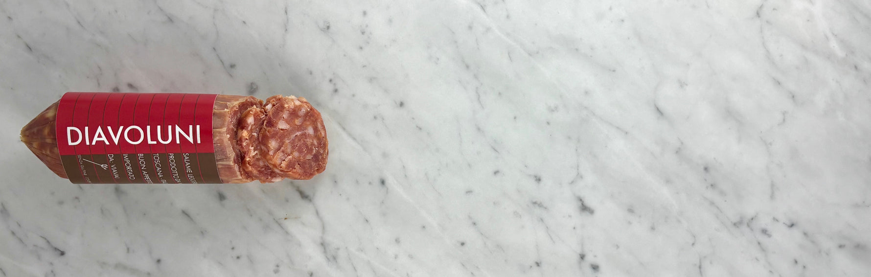 Eenheid prijs PerKleine salami met peperoncini; licht pittig, maar wel zo dat je het vlees blijft proeven.