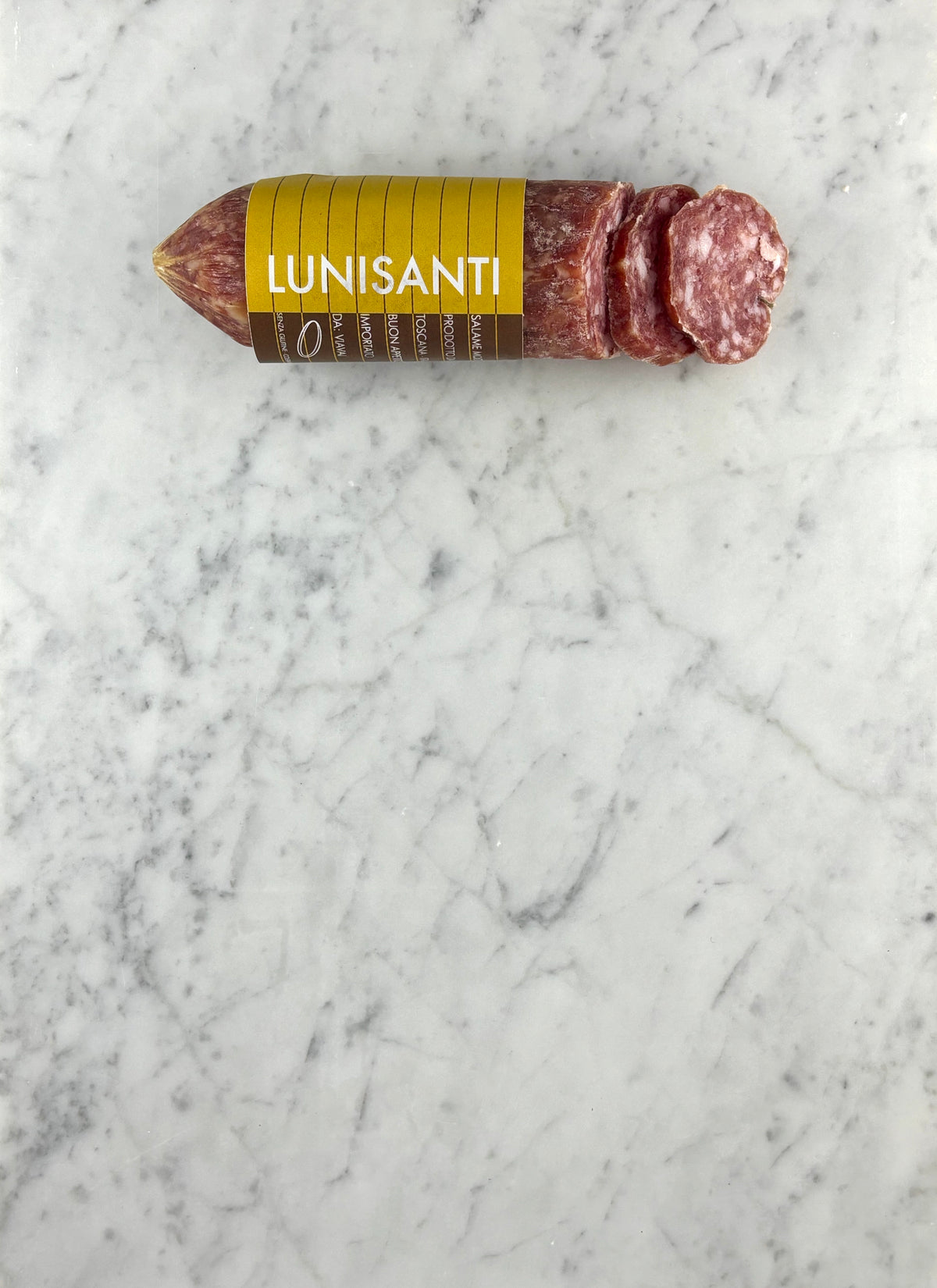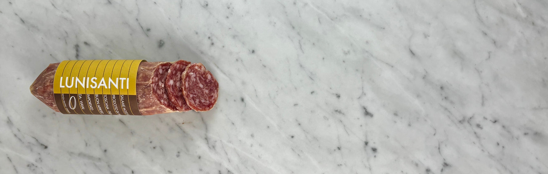 Kleine salami, vlezige structuur, zacht en iets ‘dolce’ van smaak.
